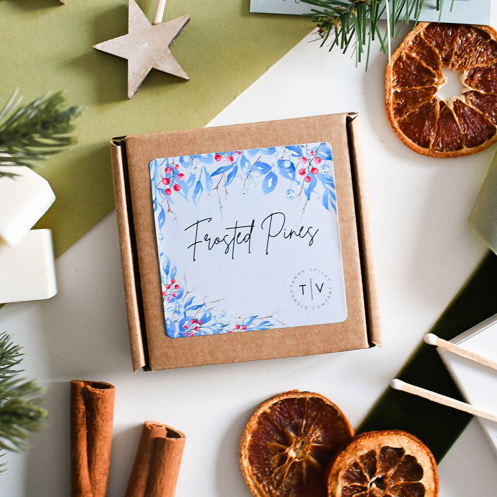 A breath of winter morning - crisp, still, and sparkling with frost. Frosted Pines brings that freshness indoors, with cool pine needles, eucalyptus, and a whisper of snow-soft musk.