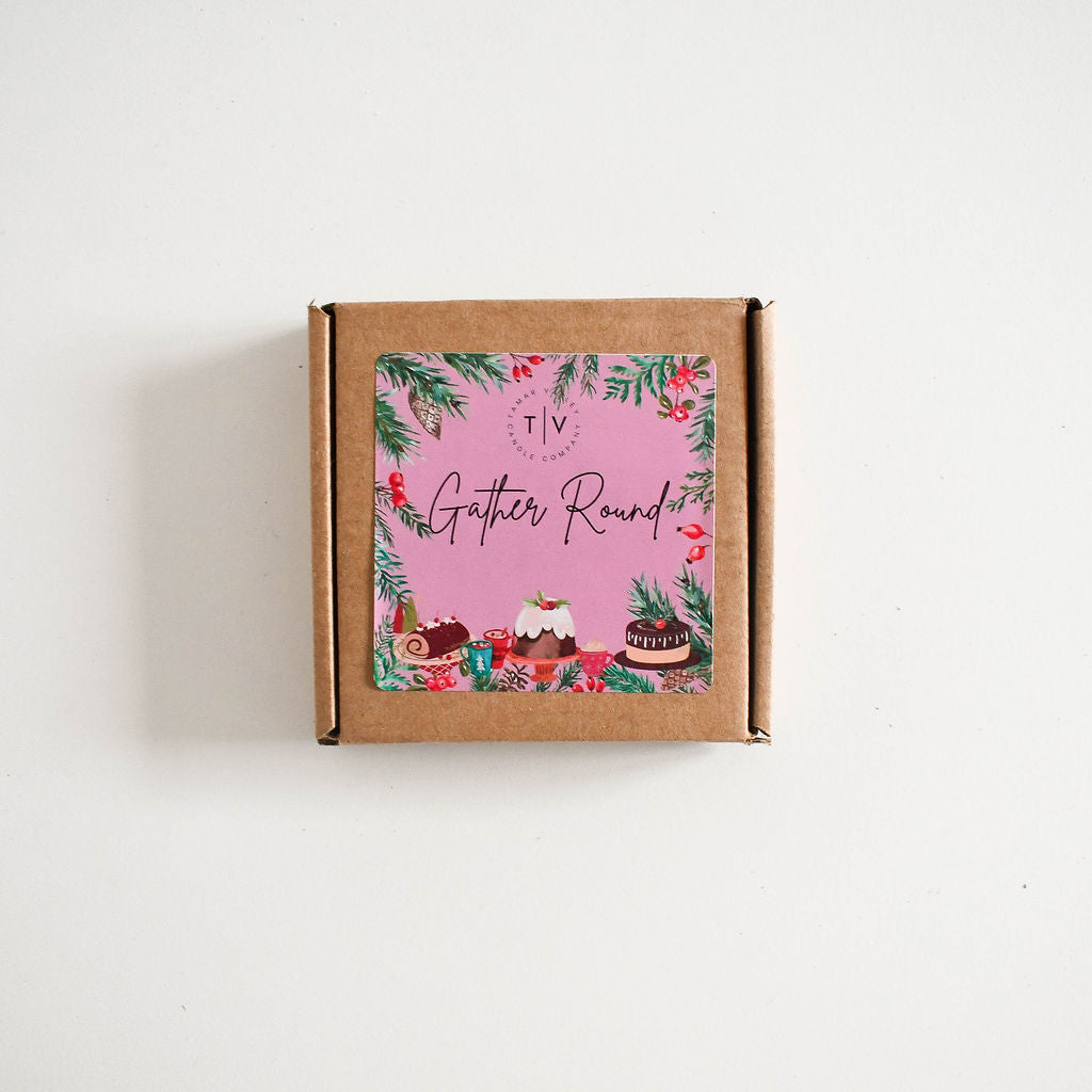 The table’s set, candles flicker, and laughter fills the air. Gather Round is that moment when everyone comes together - spoons clinking, glasses raised, the scent of spiced fruit and rich pudding drifting through the room.